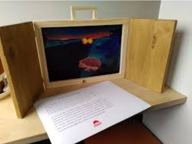 Un kamishibai (littéralement « pièce de théâtre sur papier ») est un genre narratif japonais qui utilise un castelet de théâtre miniature (et de là ambulant), où des artistes racontent des histoires en faisant défiler des illustrations devant les spectateurs. C’est sous cette forme que vous seront contées les aventures de Georges, un petit hérisson. C’est le printemps, l’hibernation a pris fin, venez écoutez tous les dangers que petit rencontrer ce petit animal quand il s’aventure dehors dans l’immensité et la nuit. Aidez-le par la suite à collecter sa nourriture préférée : de toutes petites bêtes terrestres pour calmer sa grande faim au sortir de l’hiver.